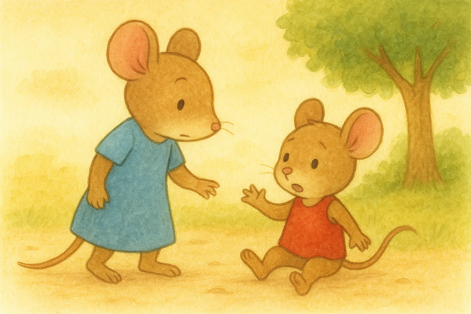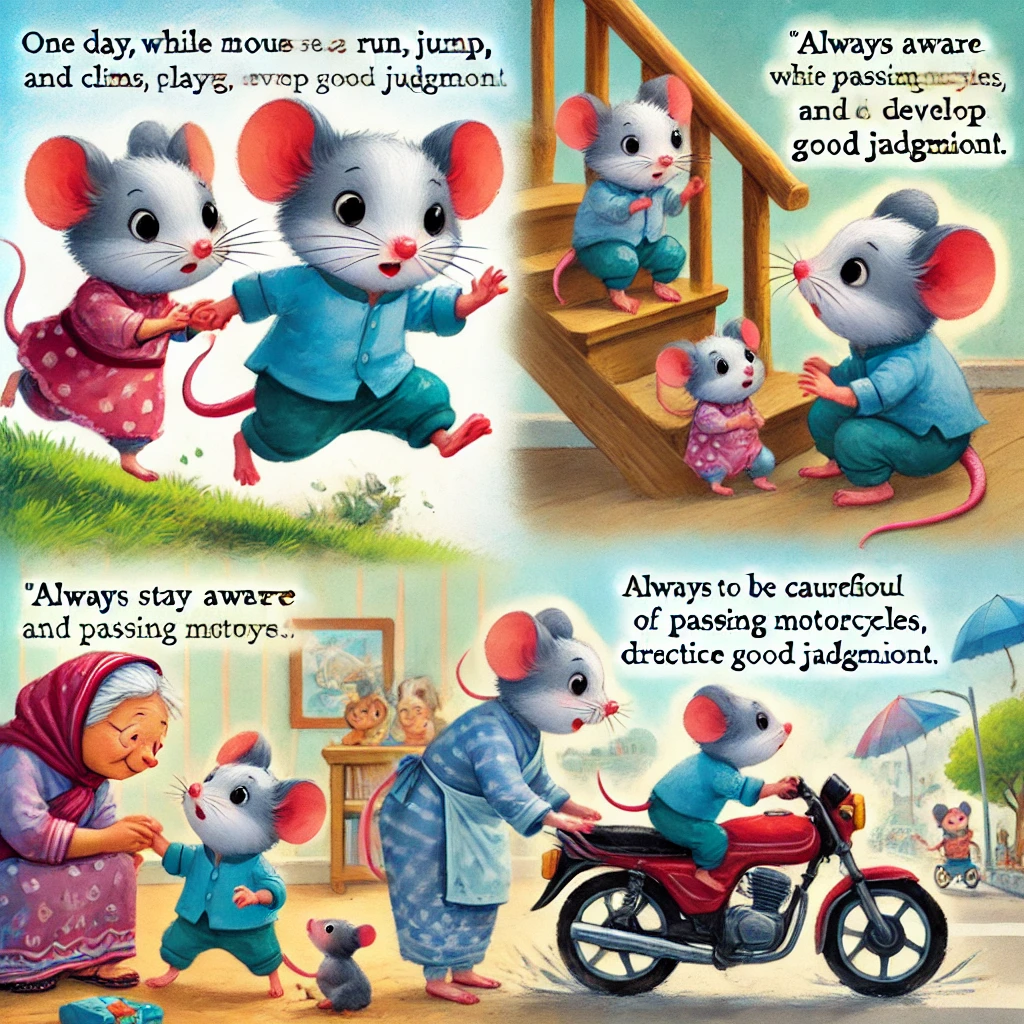 元気で活発なネズミのガンガンと、その**お姉ちゃん(または妹さん)**は、いつも走り回ったり、飛び跳ねたりする遊びが大好きです。二匹の子ネズミは、どちらも階段を登るのも、よじ登るのも得意な名人でした。